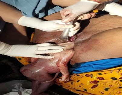 Congenital Hydrocephalus (CH), an abnormal dilatation of the cerebral ventricles, encompasses a diverse set of disorders present from birth. It causes increased intracranial pressure in the skull and causes enlargement of head, stretching of the sutures and the bones of the head become thin resulting in brain tissue to be compressed and mental defects, in severe cases it can cause death.3 About 3-4% of singleton pregnancies complicated at term by breech presentation and is associated with increased rate of perinatal morbidity and mortality. Cesarean delivery often needed to avoid potential complications like umbilical cord prolapse, birth asphyxia, and traumatic injuries in this population as vaginal delivery in such cases carries increased risks.4 Proper antenatal care with physical examinations and investigations eg. ultrasounds can avoid such an unanticipated obstetric emergency in our case. Fetal anomalies can be identified allowing the case to be managed by multidisciplinary team, proper counseling to patient and delivery planning. In a resource-limited settings, barriers to accessing antenatal care contribute to higher incidences of undiagnosed fetal conditions, underscoring the need for improved healthcare infrastructure and education.5,6